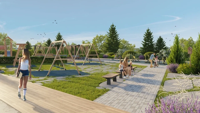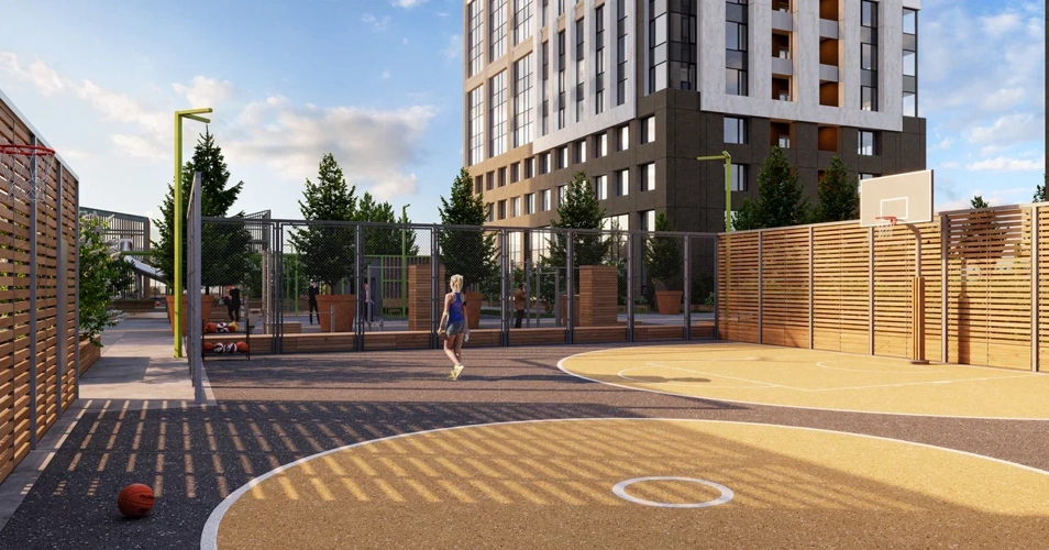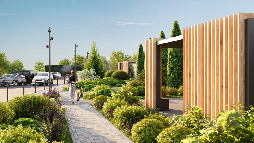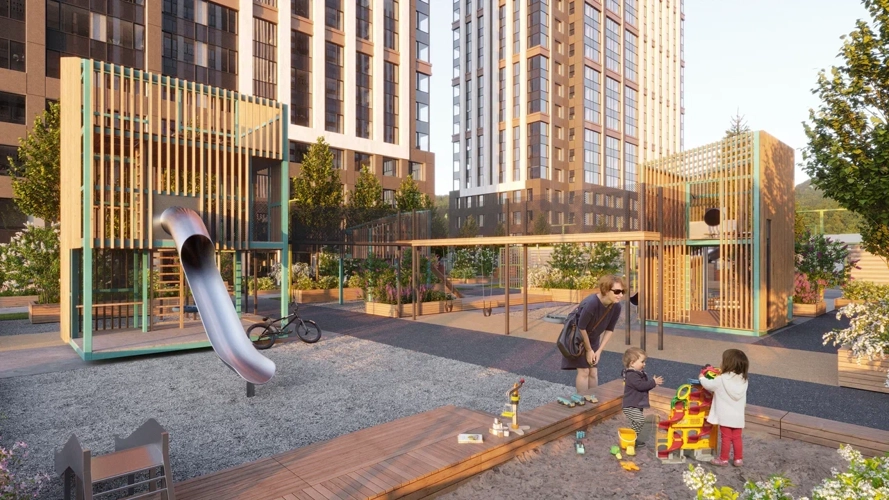 Проект жилого комплекса делит его пространство на несколько зон, объединённых единой концепцией – создание уюта загородного участка в современном городском дворе.
