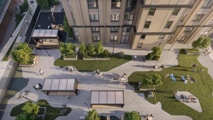 Легкая и комфортная жизнь - приоритет жилого комплекса. Здесь можно расслабиться в лаунж-зоне с мягкой мебелью, полюбоваться живописными цветниками или почитать книгу под тенью деревьев.