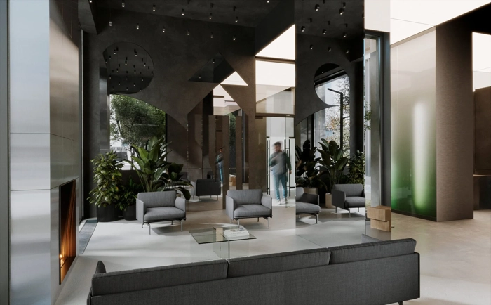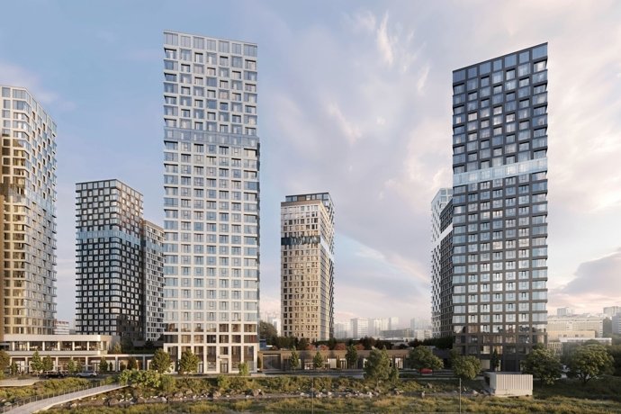 Семь зданий высотностью от 24 до 28 этажей, включая сдвоенные башни, выгодно отличаются ультрасовременным дизайном фасадов из алюминиевого сплава с долговечным анодированным покрытием серебристого, антрацитового и золотого оттенков, панорамным остеклением и архитектурной подсветкой, гармонично вписываясь в архитектурную линию и ландшафт территории.