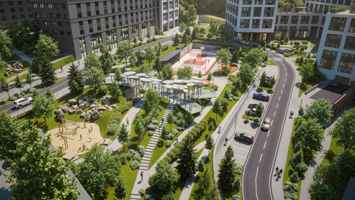 Премиальная инфраструктура квартала доступна всем резидентам — соседский центр, коворкинг, лаунж-террасы на крыше, спортивные и детские площадки, двор-парк и многое другое. Город в городе — огромная благоустроенная территория, закрытая для посторонних. Зеленые зоны, парки и прогулочные аллеи создают атмосферу гармонии и спокойствия, превращая комплекс в отличное место для жизни.