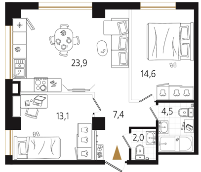 Площадь от 37.4 м2