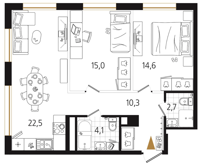 Площадь от 58.6 м2