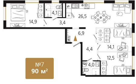 Площадь от 79.9 м2